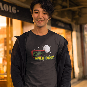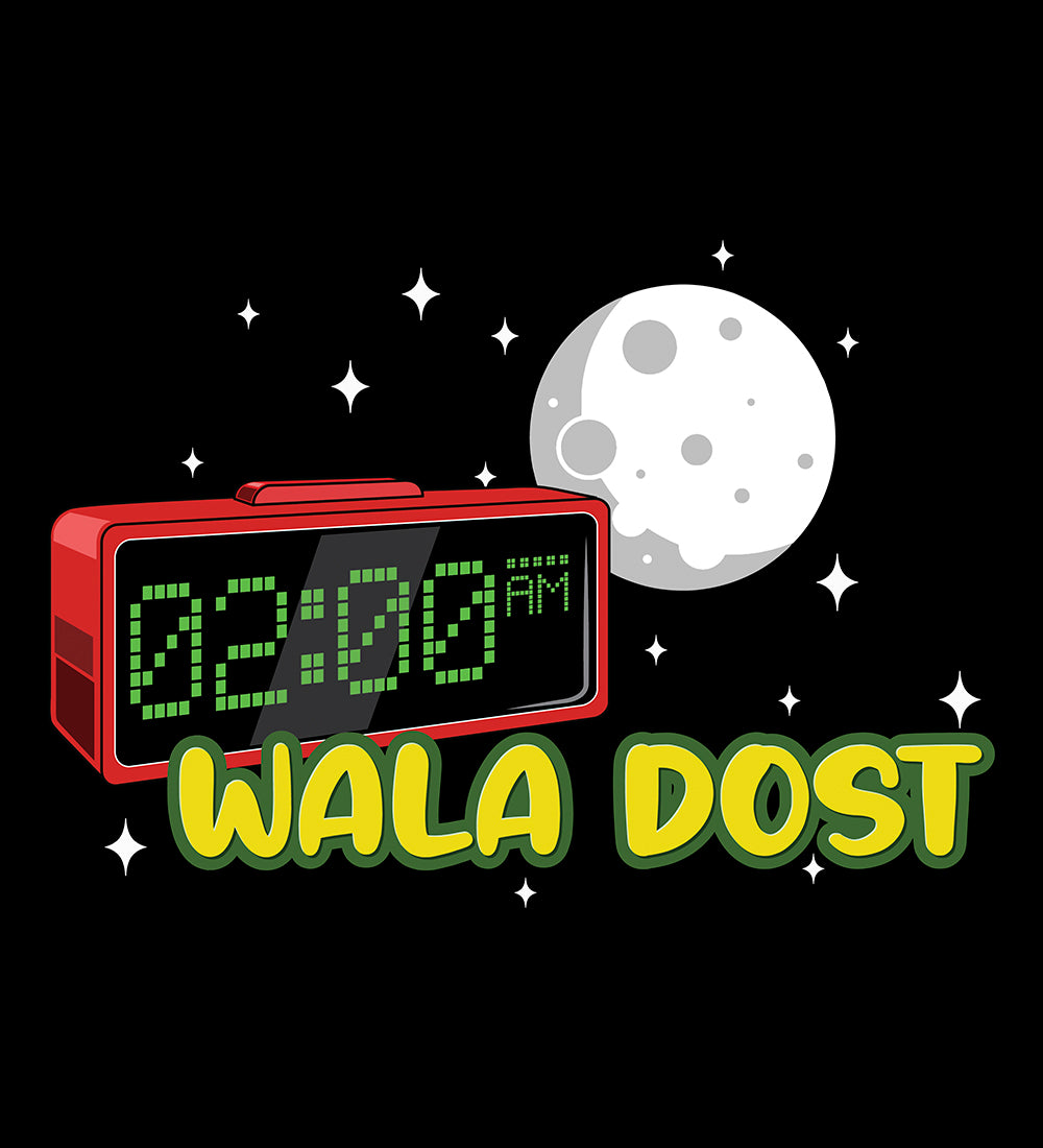 Introducing the 2AM WALA DOST UNISEX TSHIRT: Dedicated to all the friends you'll ever need at 2AM! This comfortable tee is the perfect addition to your wardrobe when you need a reliable, stylish accompaniment to a late-night midnight snack with the one friend u trust most. Get your 2AM WALA DOST TSHIRT now!