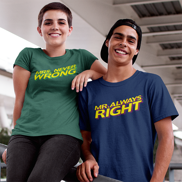 Get ready to spice up your life (and your relationship) with the ALWAYSNEVER COUPLE COMBO. Featuring Mr Always Right and Mrs Never Wrong, this quirky and humorous duo is the perfect addition to any couple's love story. Embrace the funny side of love with this unique couple set. (No guarantees on who's actually right or wrong though!)