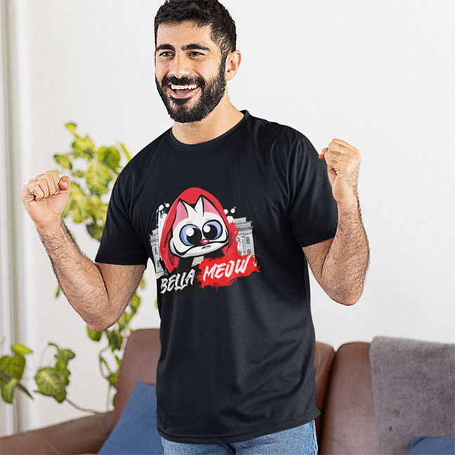 Our "Bella Meow" t-shirt is the ultimate playful nod to the hit Spanish series. With a clever twist on the iconic catchphrase, it's sure to make fans of the show and cat lovers alike laugh out loud!