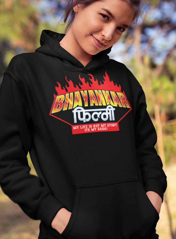 Show off your love for Bollywood with this BHAYANKAR FILMY Unisex Hoodie! This cozy hoodie is perfect for any fan who's "addicted" to Bollywood movies. So get ready for a fun-filled outing with your buddies and rock it in style!