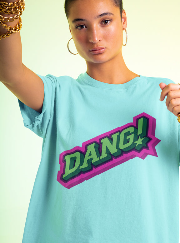 For your off-duty looks, slip on this DANG oversized t-shirt for an extra expressive edge. Make a statement with its bold branding and roomy fit, perfect for lounge days and chilled-out vibes. Express your style - DANG it!