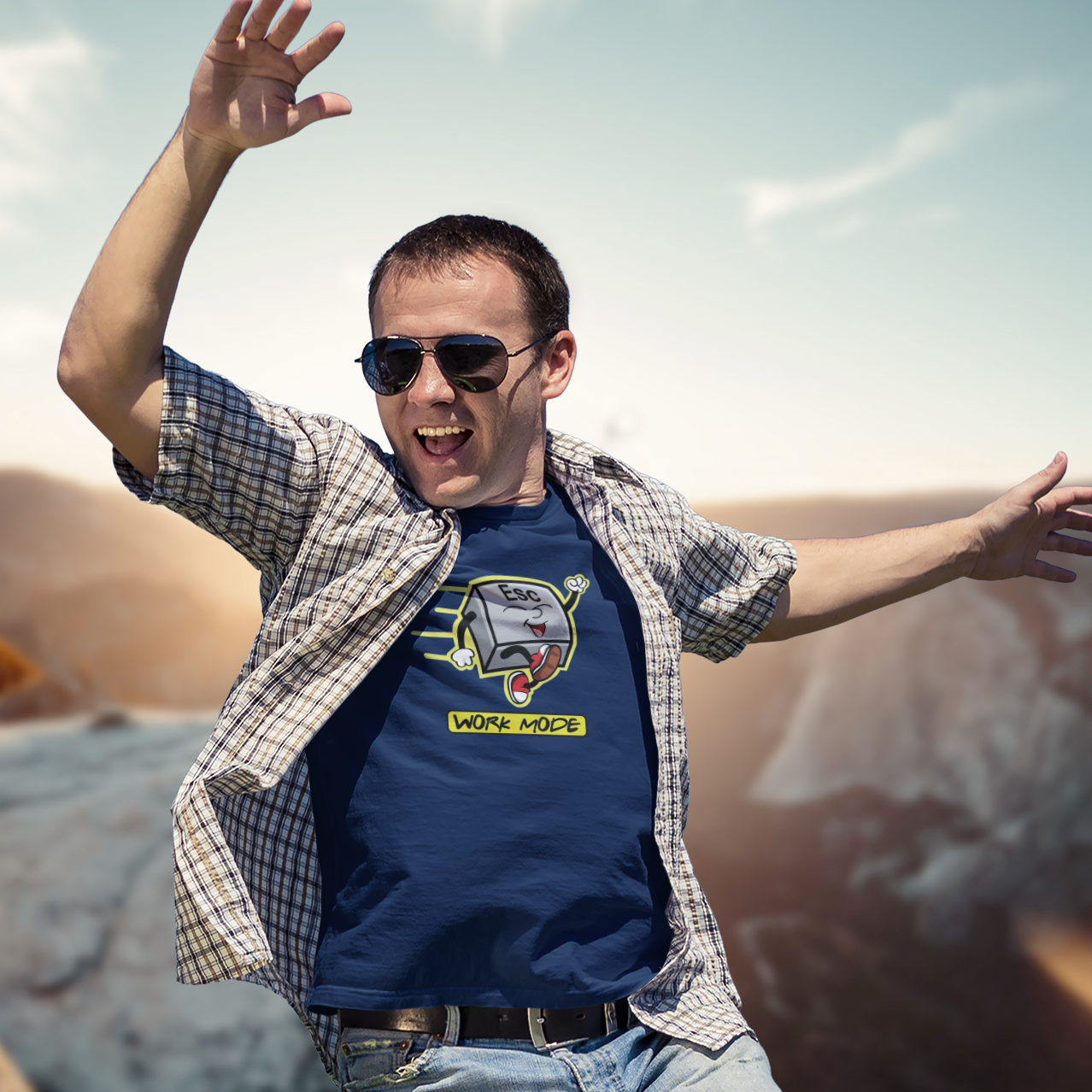 This "Escape Mode" unisex t-shirt is perfect for the times when you need to take a break from the everyday grind! Featuring a funny slogan to help you "run away from work", it's ideal for those times when the desk is calling, but the weekend isn't. Get your Escape Mode on!