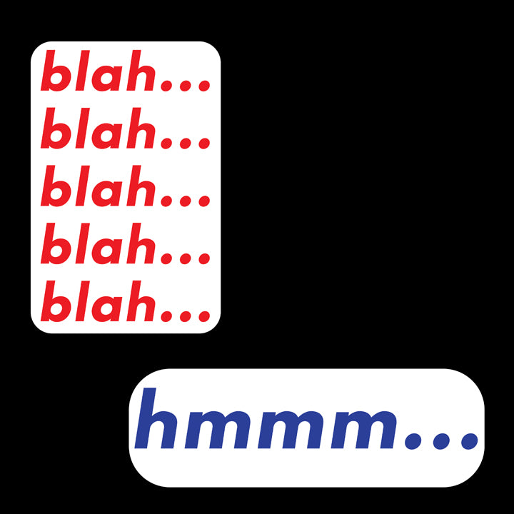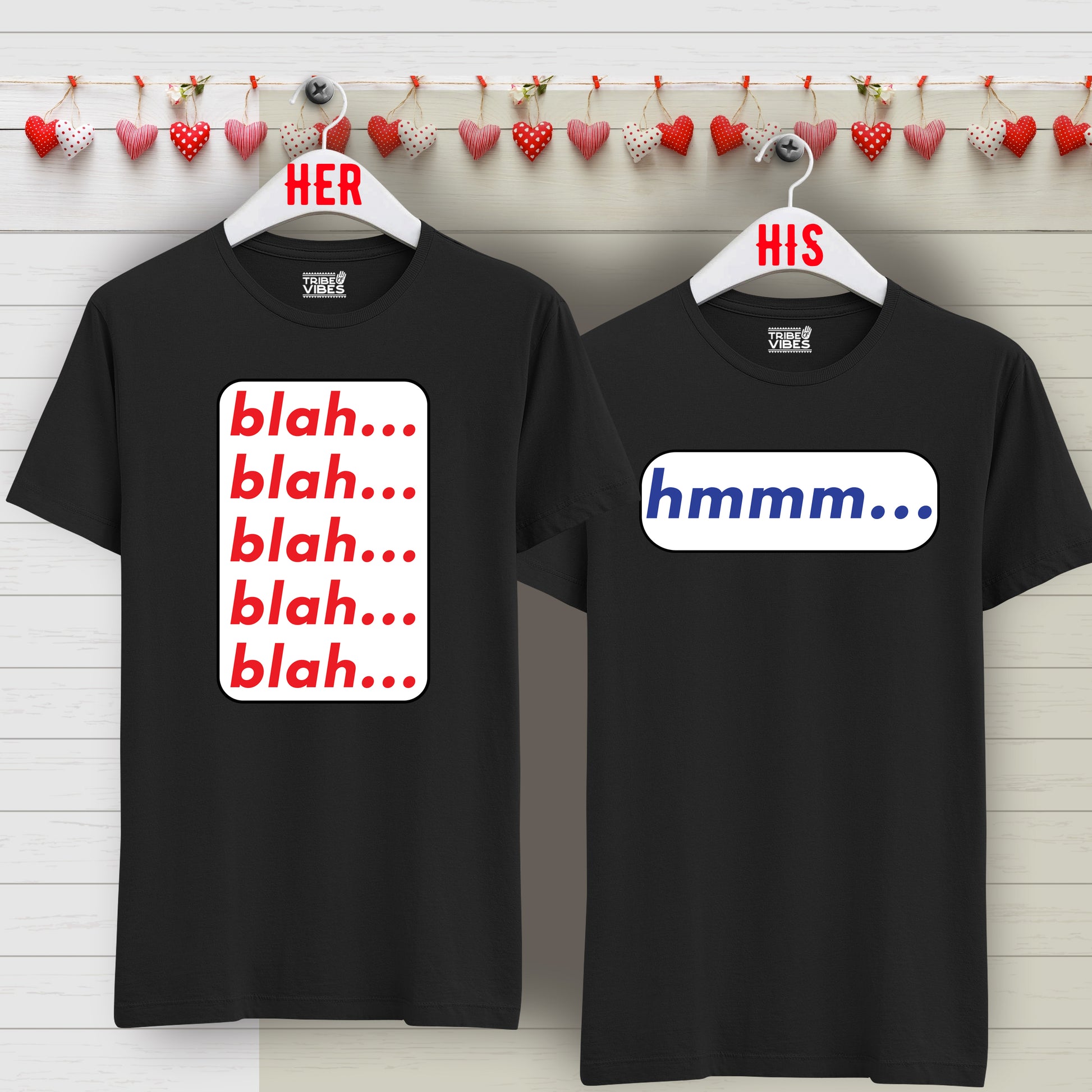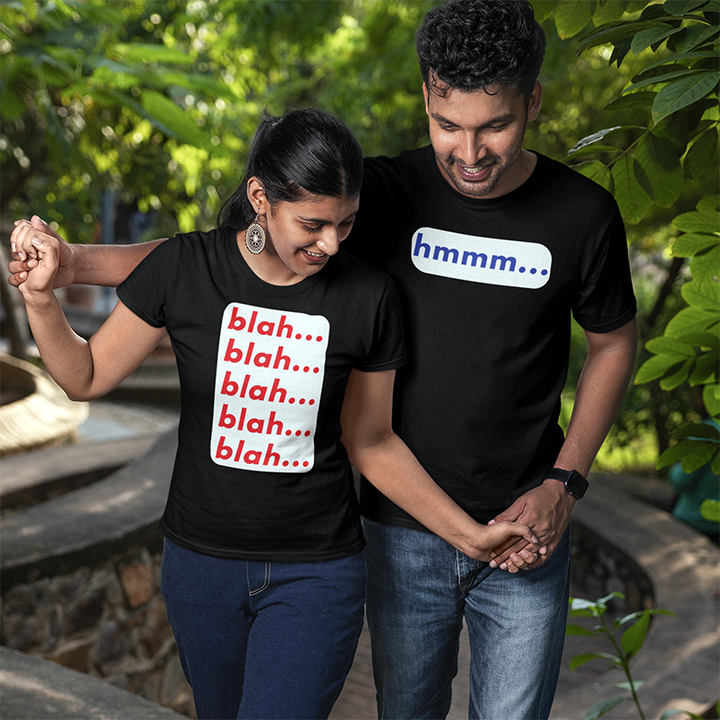 "Get ready to express yourselves with our fun and quirky EXPRESSIONS COUPLE COMBO! Featuring BLAH BLAH BLAH to keep the conversation going, and HMM for the contemplative types. Perfect for the talkative woman and her hmmm husband. Make every interaction a playful one! (No boring small talk here!)"