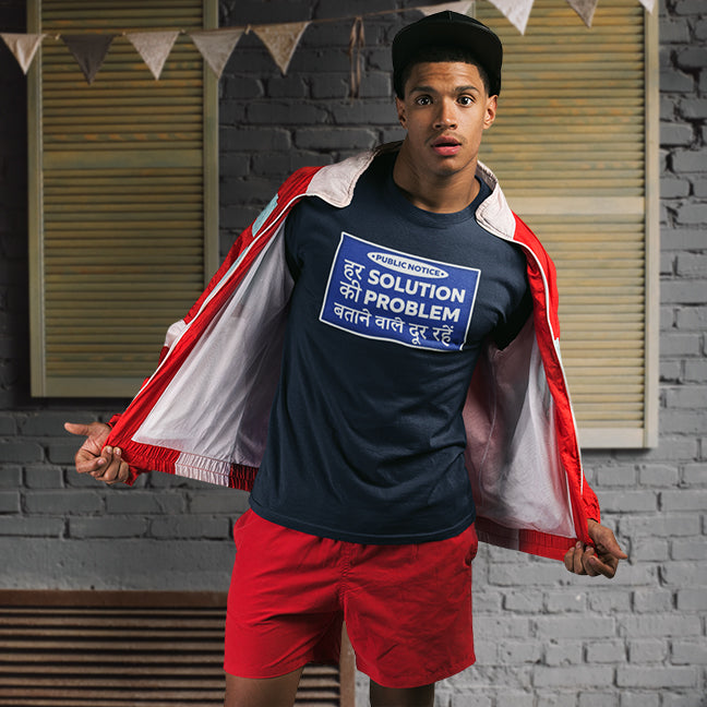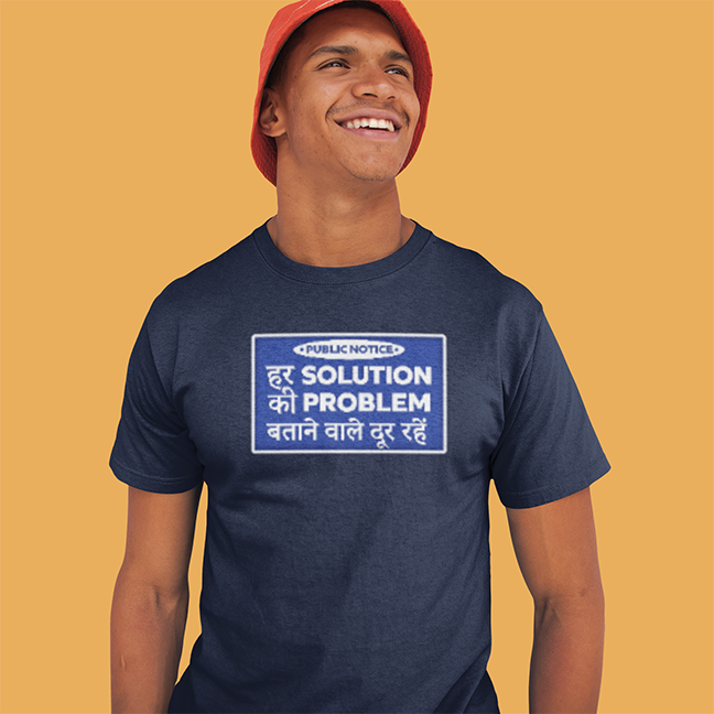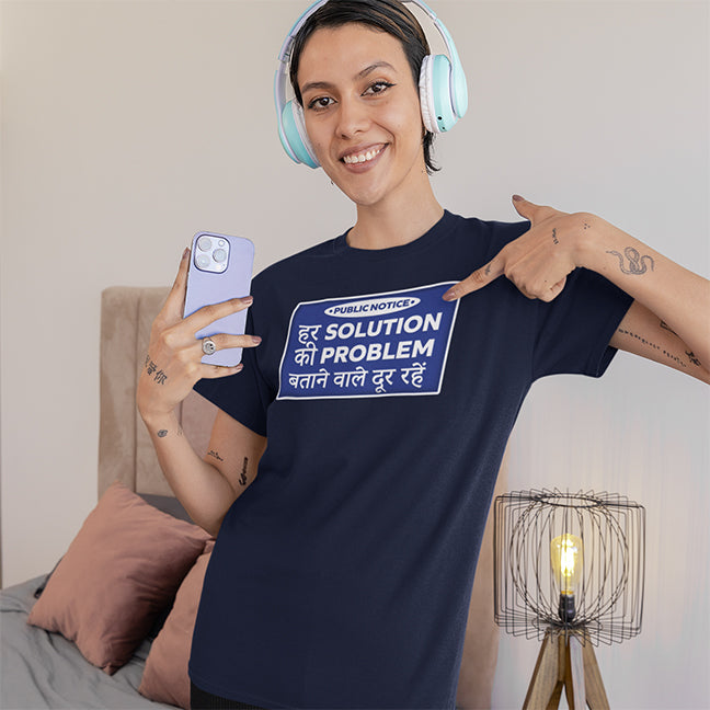 This one's for the problem-solvers who are sick of hearing irritating, useless advice. The HAR SOLUTION KI PROBLEM UNISEX TSHIRT is the perfect choice for the sarcastic go-getters out there, who know that the best solutions come from within. Get yours today!