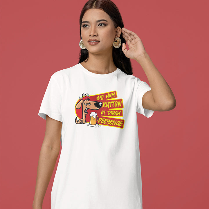 KUTTON KI TARAH PEEYENGE FUNNY UNISEX BEER TSHIRT