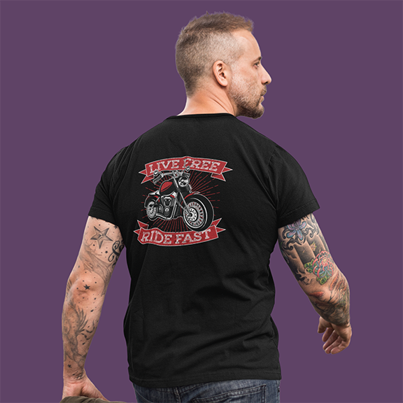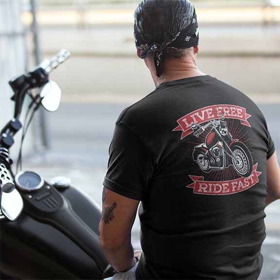This LIVE FREE RIDE FAST Bikers Backprint Unisex Tshirt offers a stylish way to show your support for biking! Enjoy the bold design of the bikers' motto printed on the back and make a bold statement. Live free, ride fast!