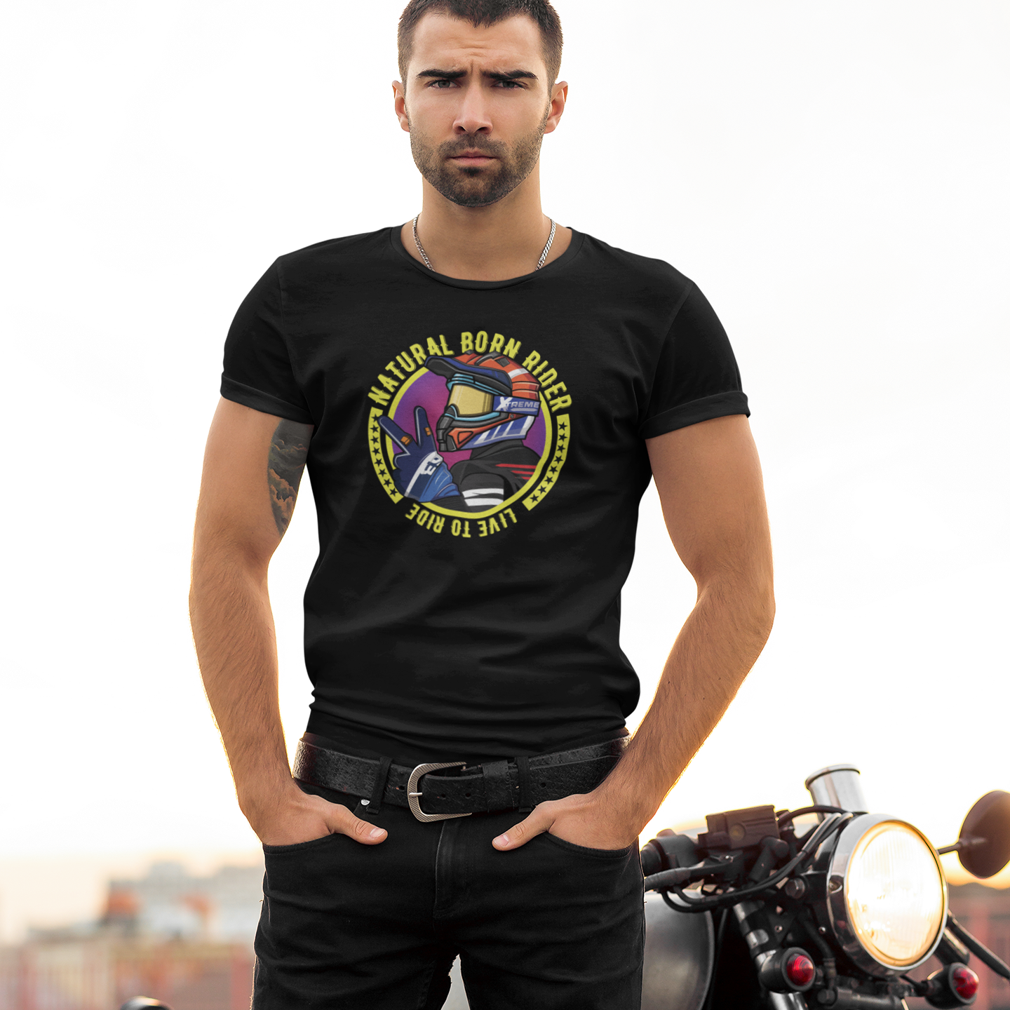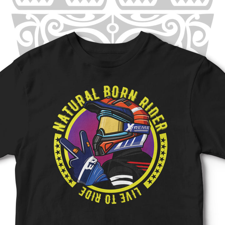 Take on the world with NATURAL BORN RIDER's bold, unisex t-shirt. Conquer challenges, express yourself, and stay comfortable with this stylish garment that shows you're a Biker to the core.