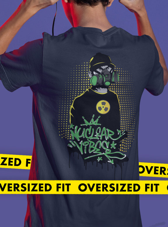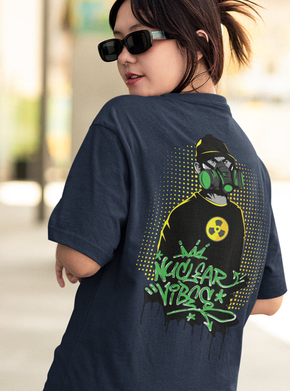 Refresh your wardrobe with our unique "Nuclear Vibes" oversized t-shirt with the design printed on the back only. Featuring a bold, radioactive design, this shirt is perfect for those who want to make a statement and stand out from the crowd. Show off your quirky and cool style with this one-of-a-kind design