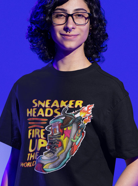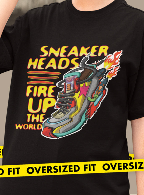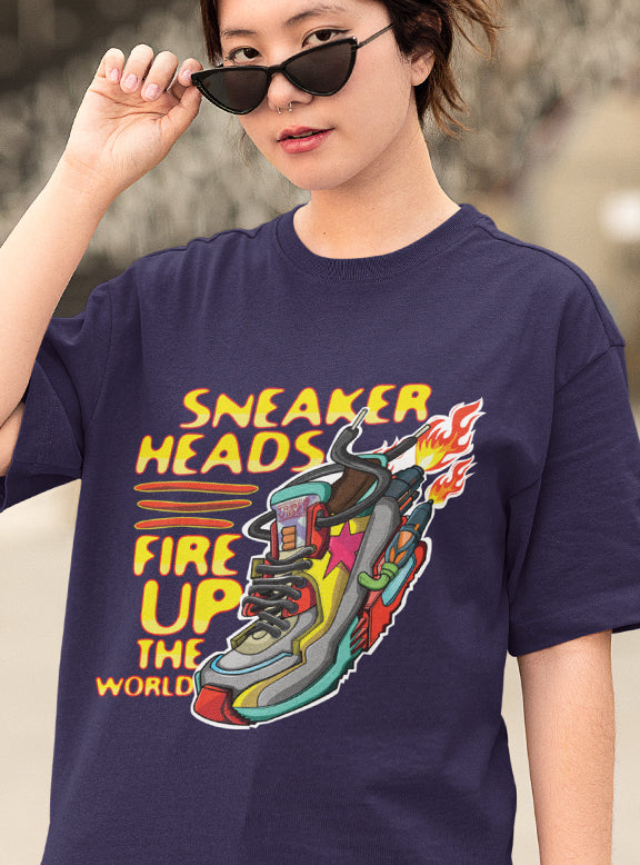 Be loud and proud with this SNEAKERHEADS RULE THE WORLD oversized t-shirt! Show your passion for the sneaker game with this statement piece that won't be ignored. Tell the world to step aside and let sneakerheads rule! (It's totally true.)