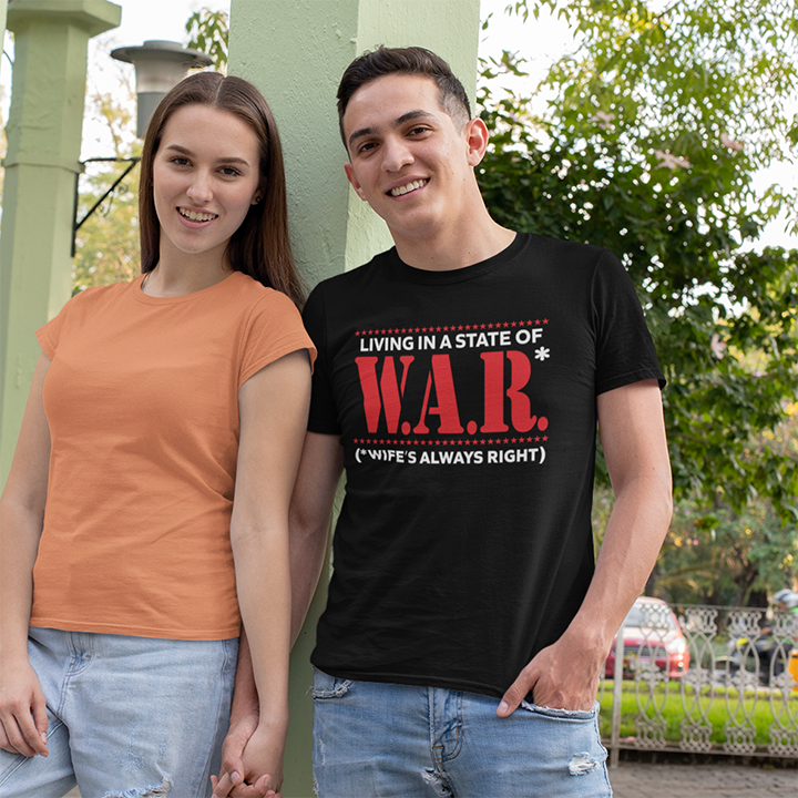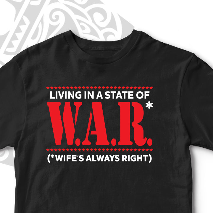 This STATE OF WAR FUNNY MEN'S TSHIRT is sure to give you a good chuckle with its funny take on the wife's always right! Perfect for any husband who likes to keep his sense of humor. !!!