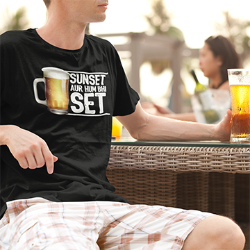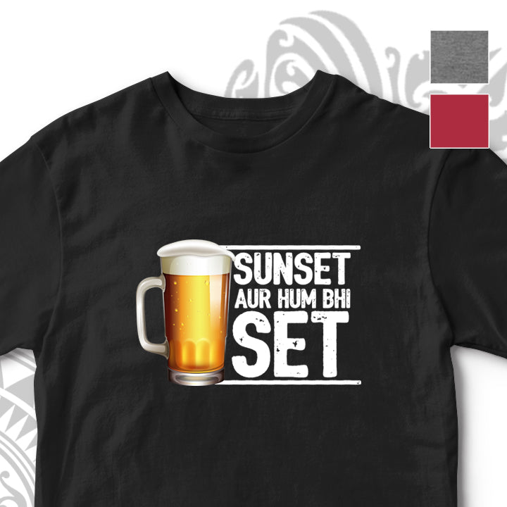 This SUNSET MEIN SET FUNNY BEER UNISEX TSHIRT may not transport you to paradise, but it'll have you feeling like it in no time! Perfect for a night out, this shirt can help make the sun set a little brighter! So grab some friends and a bottle and kick back in this comfy tee! Cheers!!