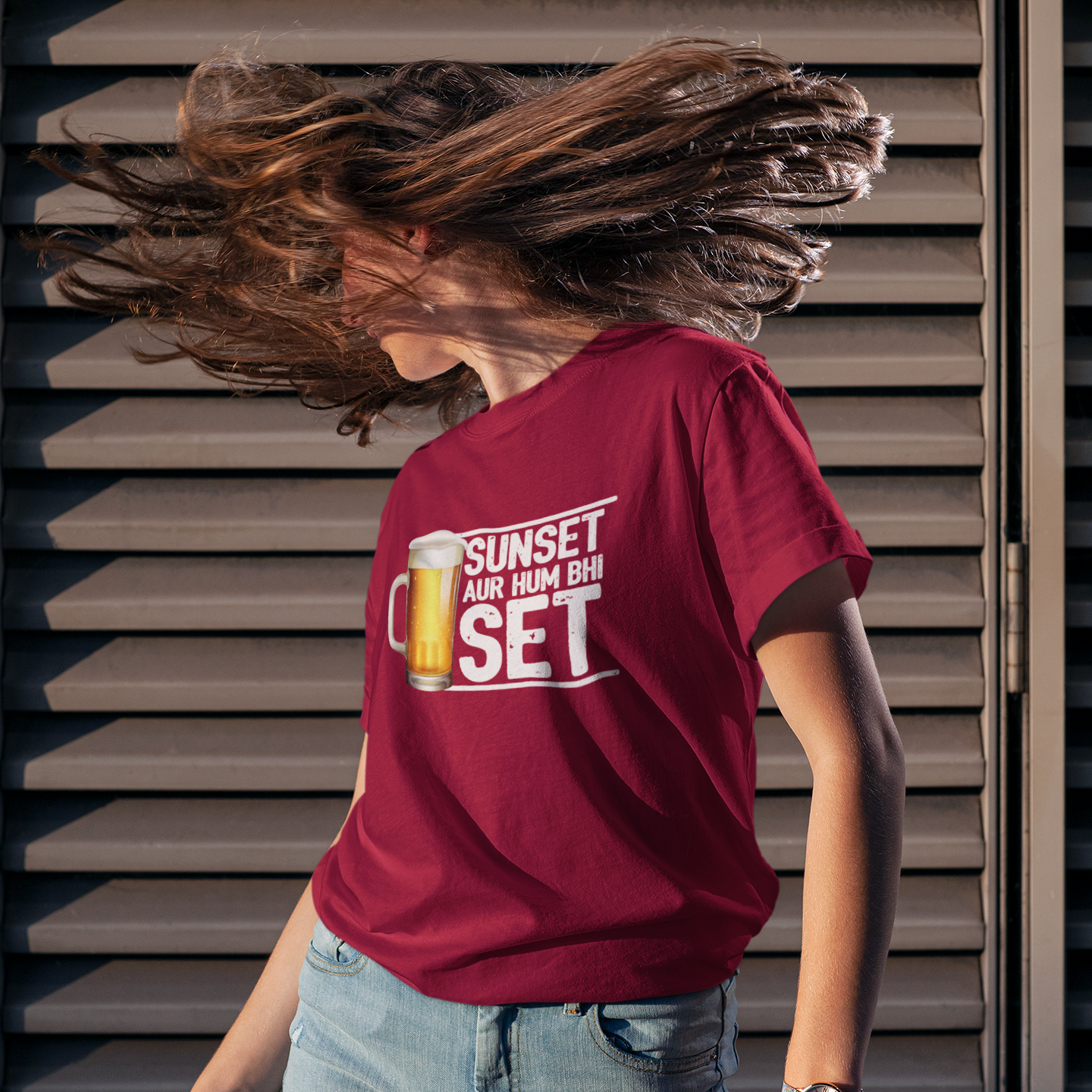 SUNSET+BEER FUNNY UNISEX TSHIRT