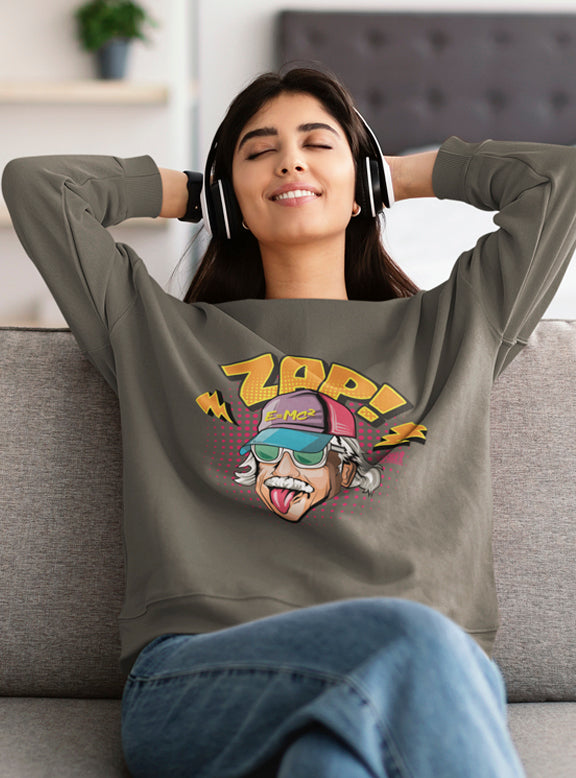 This ZAPENSTEIN unisex sweatshirt will make you look like a genius without any of the hassle. Featuring a humorous design of Einstein, it's perfect for those who want to look smart and have a good laugh! Let this shirt do the talking and zap your way to style.