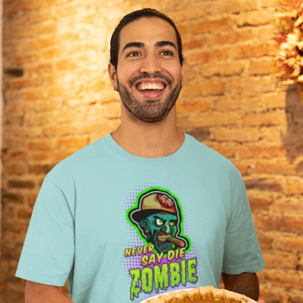 Stand out in the crowd with our unique zombie apocalypse t-shirt. The fluorescent design is sure to catch everyone's eye, making it the perfect shirt for those who want to make a statement. The design features a vibrant and peppy take on the apocalypse, showing that even in the darkest of times, you can still have fun. The unique design is perfect for anyone who loves zombies and over the top designs or just wants a shirt that is different from the rest. So, when the zombies come, make sure you're wearing our fluorescent apocalypse t-shirt